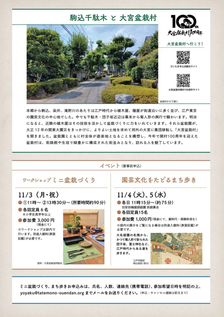 「江戸園芸のいろは 〜盆栽~」駒込千駄木と大宮盆栽村 (大宮盆栽村100周年記念連携企画)